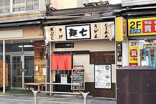 柏駅東口の「麺七」でお昼を食べました。 お店は、柏駅東口を出て正面の駅前通りを2~3分歩いたところ。 店頭のメニュー。 カウンターのみ、8席程度のこじんまりした店内。店内中央にある券売機で食券を買ってから席に着く方式です。 本日の日替りの①アナゴ…