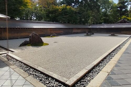 (つづき)秋の京都旅行の2日目、12時過ぎに嵐電の龍安寺駅に到着し、龍安寺まで歩いて向かいます。 10分弱で龍安寺の入口に到着。ここから参道が延びています。 境内の案内図。 山門の手前の拝観受付で拝観料を払います。 拝観料は大人500円でした。 順路に…