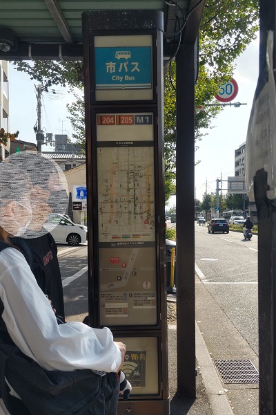 10分ほどバスを待って、13時45分ごろ、京都市営バスの205系統、西大路四条・西大路七条・京都駅行きに乗車します。