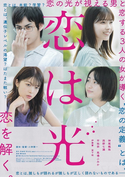 恋する人が光って見える主人公を中心に、大学生たちが織りなす爽やな純愛物語。心地よい空気の中で物語が淡々と進んでいく感じで、それぞれの気持ちの揺れ動きが表情やセリフでうまく表現されていて、好感が持てました。主要キャストの演技も良かった。効果的に使われていた岡山各地の風景も印象に残りました。 (6月17日(金)公開)