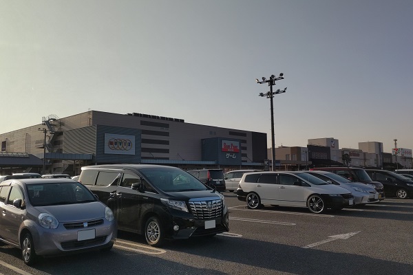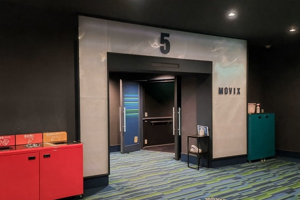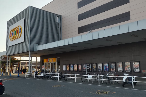 映画館の入口。なお、スーパービバホームは写真左手をさらに奥に進んだところにあります。