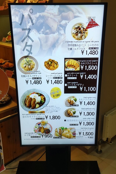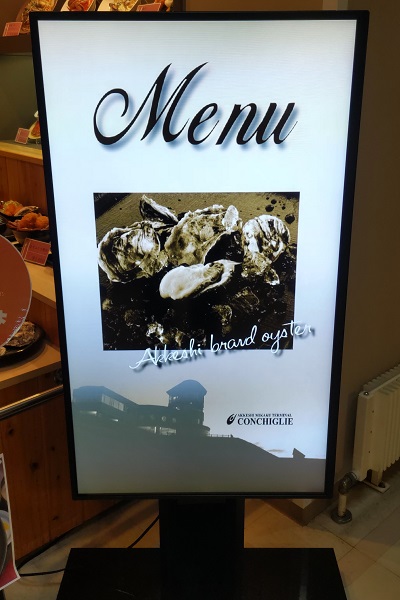 国道391号(摩周国道)→北海道道221号(塘路厚岸線)→市道→北海道道1128(厚岸昆布森線)→北海道道14号(厚岸標茶線)→国道44号(根釧国道)→北海道道123号(別海厚岸線)と45km弱走って、13時35分ごろ、厚岸の中心部にある「道の駅 厚岸グルメパーク」(厚岸味覚ターミナル・コンキリエ)に到着。ここでお昼を食べることにします。