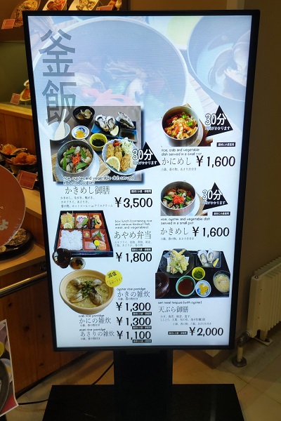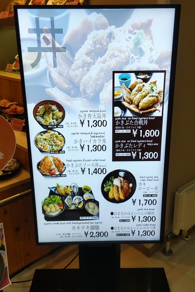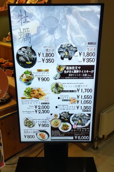 カキ好きな家族が食べたカキテキ御膳(2,300円)。カキステーキ丼に、生ガキ2個、焼きガキ1個、カキフライ2個と、カキ尽くしのメニューです。