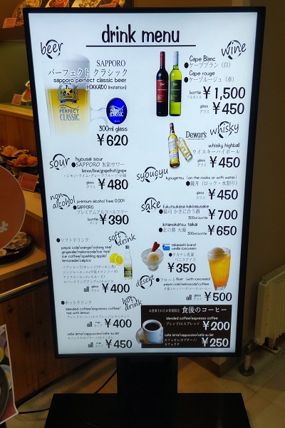 ドリンクメニュー。なお、テーブルにあったメニューもこれと全く同じ内容でした。