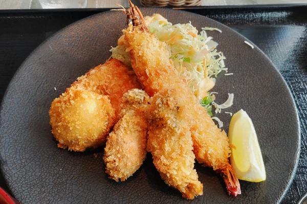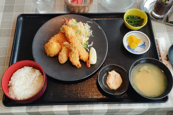 カキフライが2個に、エビフライ、ホタテフライ、タラフライが1個ずつ。何よりカキフライが身がふっくらして美味。他のフライもどれも美味しかったです。