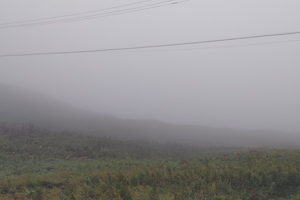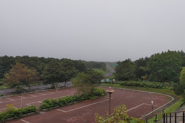 こちらが展望台。霧が多いとの名前のとおり、一面の霧です。