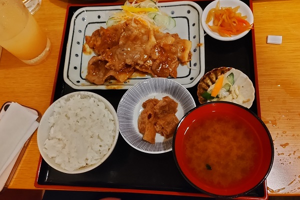 子どもはお肉定食(1,000円)。この日は豚のしょうが焼きでした。