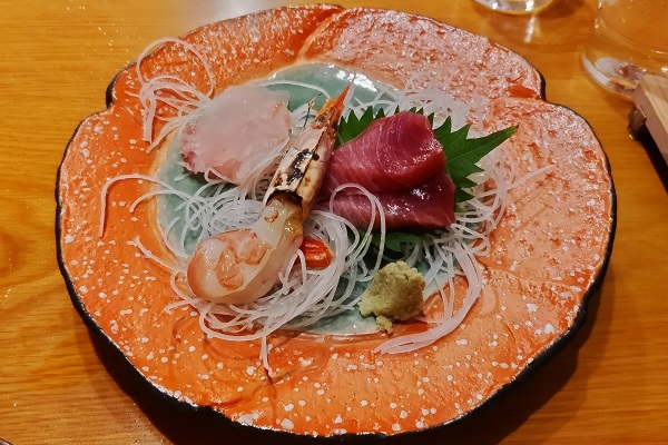 本日のお刺身(750円)。ぶり、ひらめ、えびの3種でした。