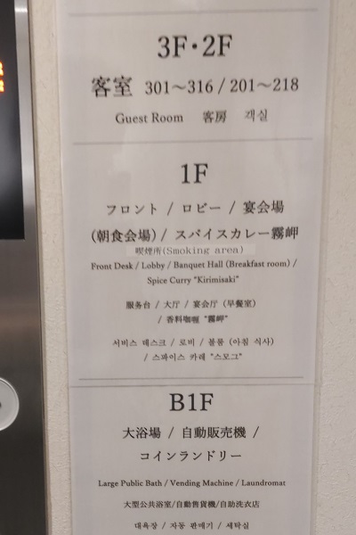さて2日目、早めに起きて、前日の夜に入りそびれた地下1階のお風呂に。お風呂は、夜が16時から24時まで、朝が6時から9時まで、サウナは16時から23時までです。