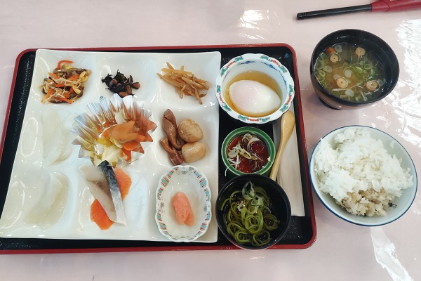 朝食はホテルの1階の朝食会場でのバイキング。時間は7時から9時までです。