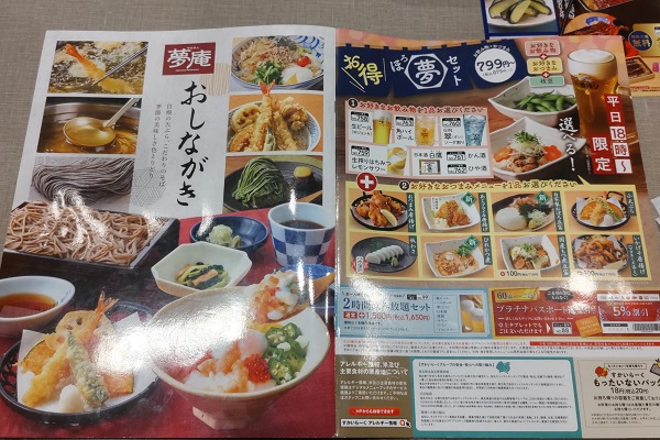 夢庵御膳など特選メニュー。