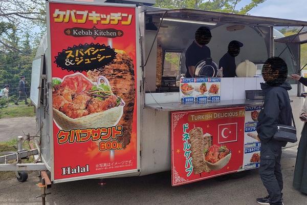 家族は、近くで出店していたケバブのキッチンカーへ。大きな案内にはケバブサンド600円とありますが、この日は、ケバブサンド650円、ケバブラップ800円、おつまみケバブ700円という品揃えでした。