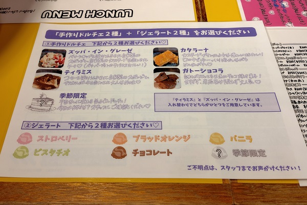 ランチセットの案内。大盛りが無料なのは嬉しいところです。