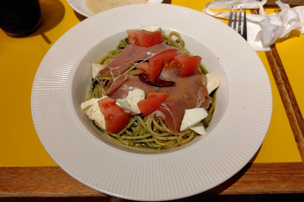 もう1人が食べた、プロシュート(生ハム)・モッツァレラ・フレッシュトマトの自家製ジェノベーゼスパゲティ(1,540円)。いずれも、食べた本人は満足していたようです。