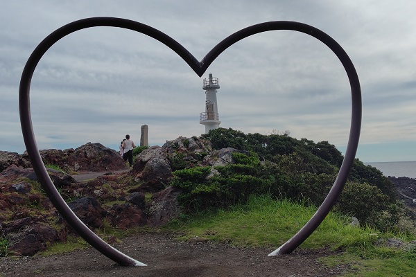 薩摩長崎鼻灯台は2018年に「恋する灯台」に認定されたそうで、ハート型のモニュメントが設置されていました。