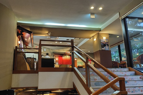 翌朝、起きようと思っていた時間よりも寝坊してしまい、朝食まであまり時間がなかったので、元禄風呂よりも近い、フロントの1階上にあるもうひとつのお風呂「大浴殿 松雲」に急ぎめに入浴します。こちらは内湯のみのお風呂でした。