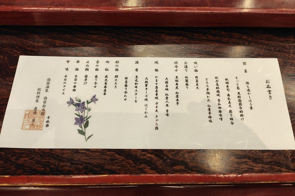 入浴の後、ひと休みしてから、薩摩客殿6階の食事処「御所」で夕食。