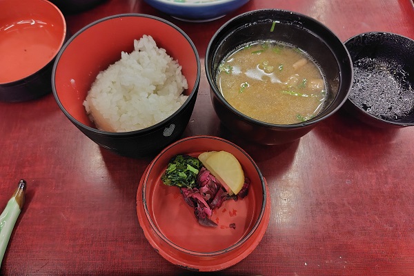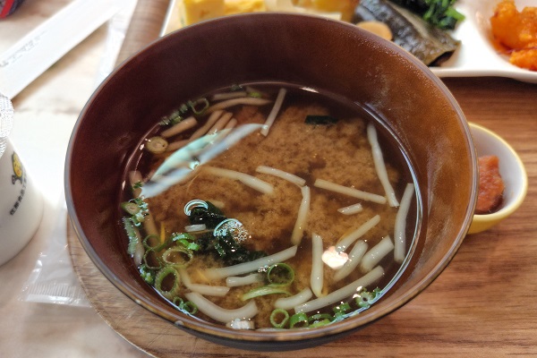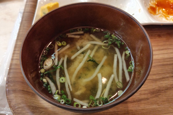 お味噌汁も赤味噌と白味噌の2種類ありました。最初は赤味噌の方をいただきました。