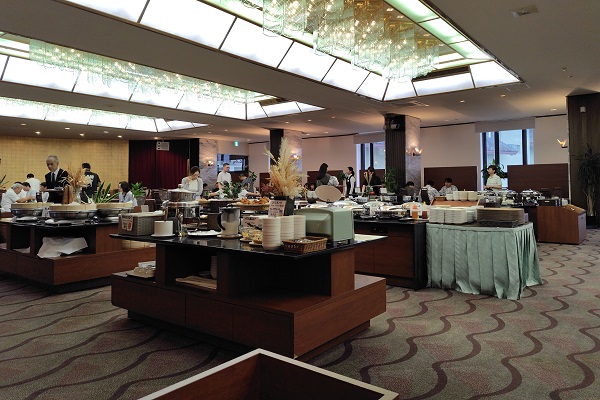 7時から薩摩客殿の7階のダイニング「ルビー」でバイキング形式の朝食。