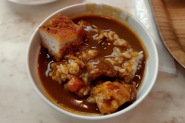 〆に鹿児島県産米のご飯とお新香、薩摩汁。この後に、デザートで果物とアイスも出てきました。