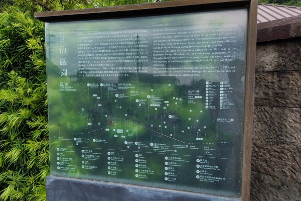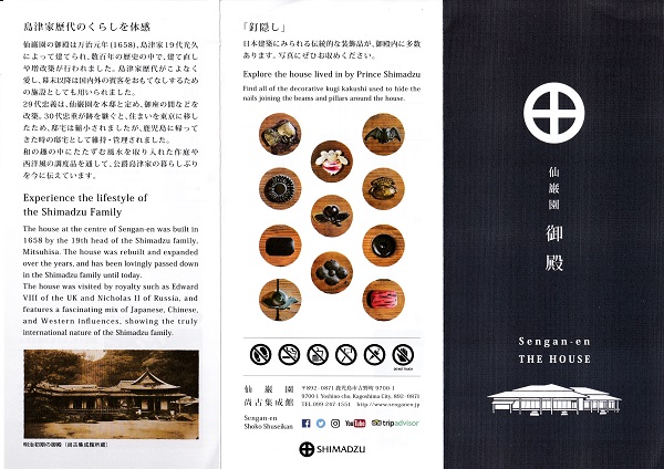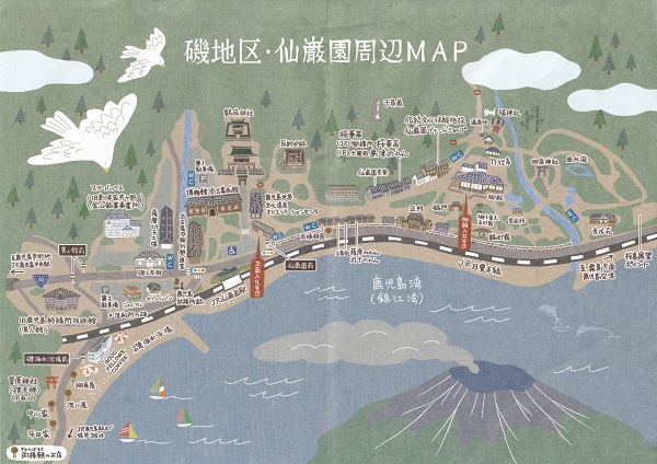 こちらは仙厳園の案内。仙巌園は、万治元年(1658年)に島津家の第19代当主の島津光久が築いた別邸で、桜島や錦江湾を庭の借景として取り入れた庭園で、島津家・薩摩藩の迎賓館の役割も果たしていたそうです。