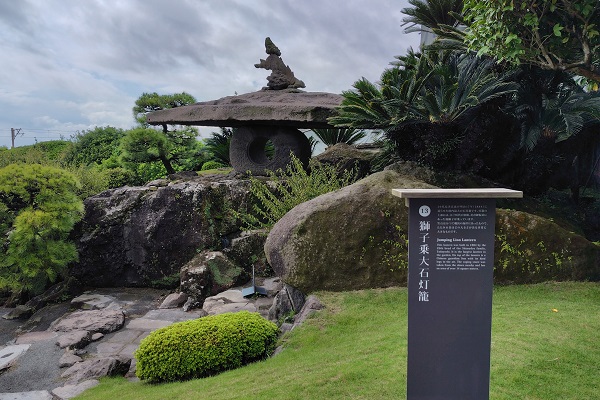獅子乗大石灯籠。明治17年(1887年)に29代当主の忠義が造らせた国内最大の石灯籠だそうです。