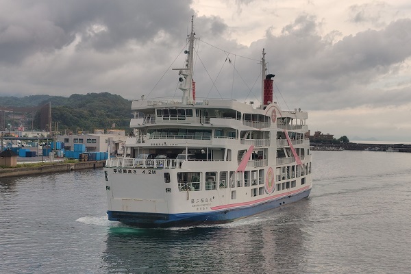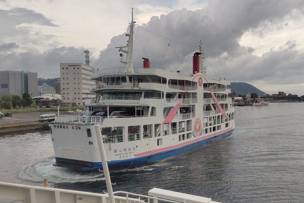 間もなく、港に桜島港からのフェリーがやってきました。