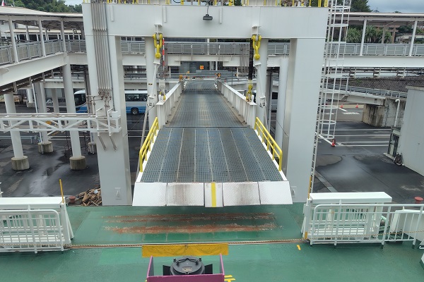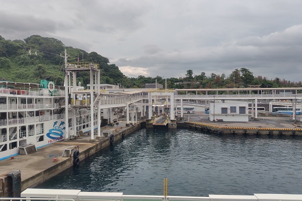 フェリーの船上から乗船口の方を眺めたところ。