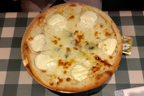 連れが頼んだ「冬のごちそう生パスタ」の1品、大粒広島牡蠣と帆立の醤油バター風味(1,480円)とクアトロ・フォルマッジ(1,250円)。どちらも、食べた本人は美味しかったようです。
